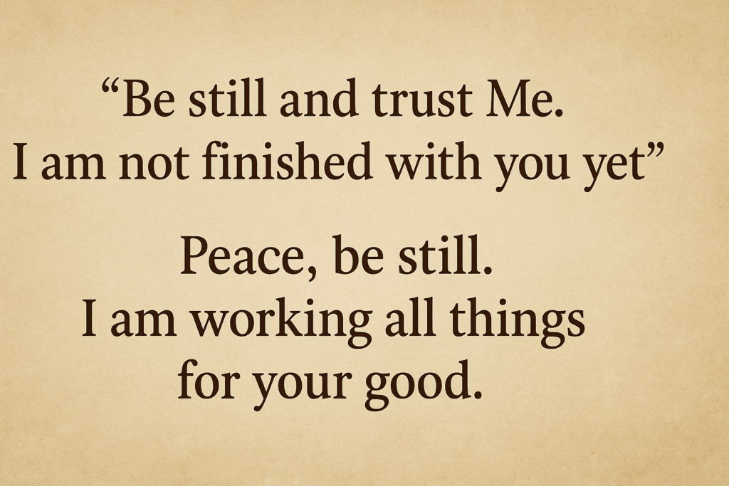 “Lord, thank You for reminding me that You are still in control. Help me to wait with faith and to trust that Your plan is greater than my understanding. Amen.”